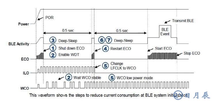 1.在32.768-kHz watch晶體振蕩器(WCO)啟動時,關(guān)閉24-MHz外部晶體振蕩器(ECO)以降低功耗。