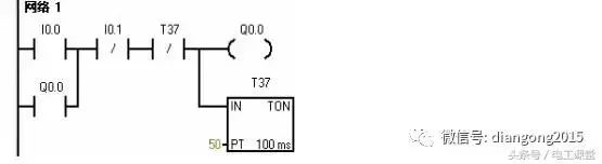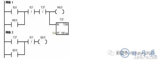 3.延時啟??刂齐娐吩撾娐芬笥休斎胄盘柡?,停一段時間輸出信號才為ON;而輸入信號0FF后,輸出信號延時一段時間才OFF。 T37延時3 s作為Q0.0的啟動條件,T38延時5 s作為Q0.0的關斷條件。