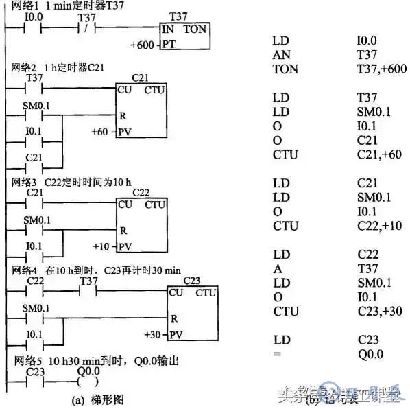 2.延時停止控制 定時時間到,延時停止。I0.0為啟動按鈕、I0.1為停止按鈕。