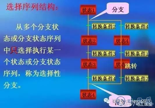 在生產(chǎn)實際中,對具有多流程的工作,要進行流程選擇或者分支選擇。即一個控制流可能轉(zhuǎn)入多個可能的控制流中的某一個,但不允許多路分支同時執(zhí)行。到底進入哪一個分支,取決于控制流前面的轉(zhuǎn)移條件哪一個為真。