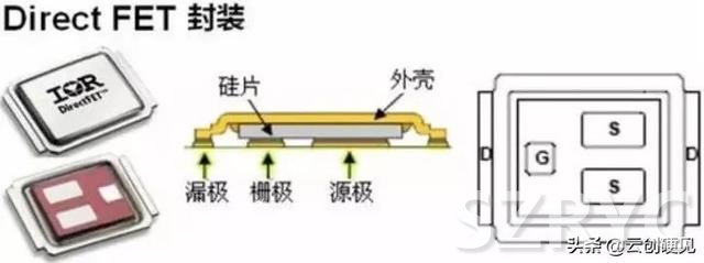Direct FET封裝屬于反裝型,漏極(D)的散熱板朝上,并覆蓋金屬外殼,通過(guò)金屬外殼散熱。Direct FET封裝極大地改善了散熱,并且占用空間更小,散熱良好。
