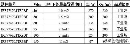 IR Direct FET封裝系列部分產(chǎn)品規(guī)格