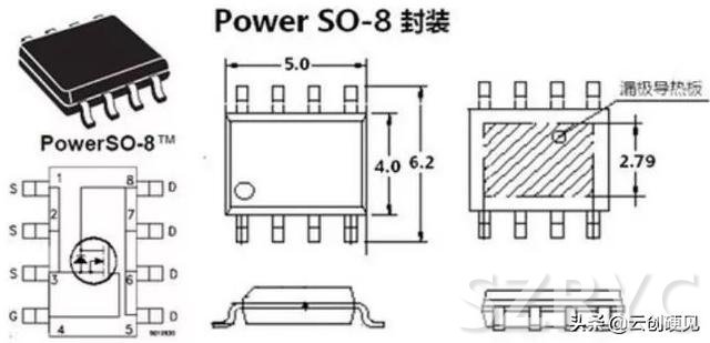 標(biāo)準(zhǔn)的SO-8封裝采用塑料將芯片包圍,低熱阻的熱傳導(dǎo)通路只是芯片到PCB的引腳。而底部緊貼PCB的塑料外殼是熱的不良導(dǎo)體,故而影響了漏極的散熱。