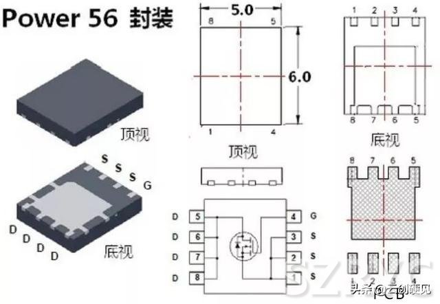 Power 56是Farichild的專用稱呼,正式名稱為DFN 5×6。其封裝面積跟常用的TSOP-8不相上下,而薄型封裝又節(jié)約元件凈空高度,底部Thermal-Pad設(shè)計(jì)降低了熱阻,因此很多功率器件廠商都部署了DFN 5×6。
