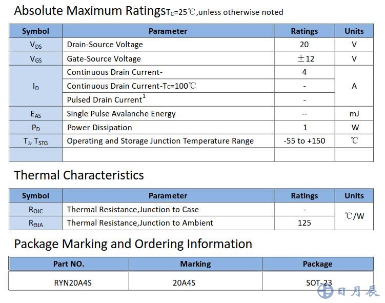 1) VDS=20V,ID=4A,RDS(ON)<45mΩ@VGS=4.5V. RDS(ON)<59mΩ@VGS=2.5V.